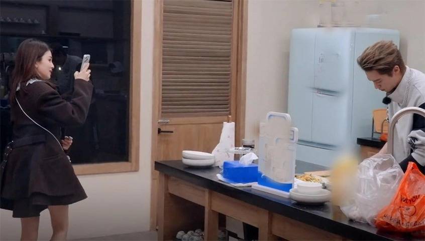 她明明穿着短裙,在冷风中冻得直发抖,却还拿着手机录王鹤棣做饭,这种「被照顾了但我要留着证据以后调侃你」的互怼模式,实在是当代年轻人理想关系的典范。